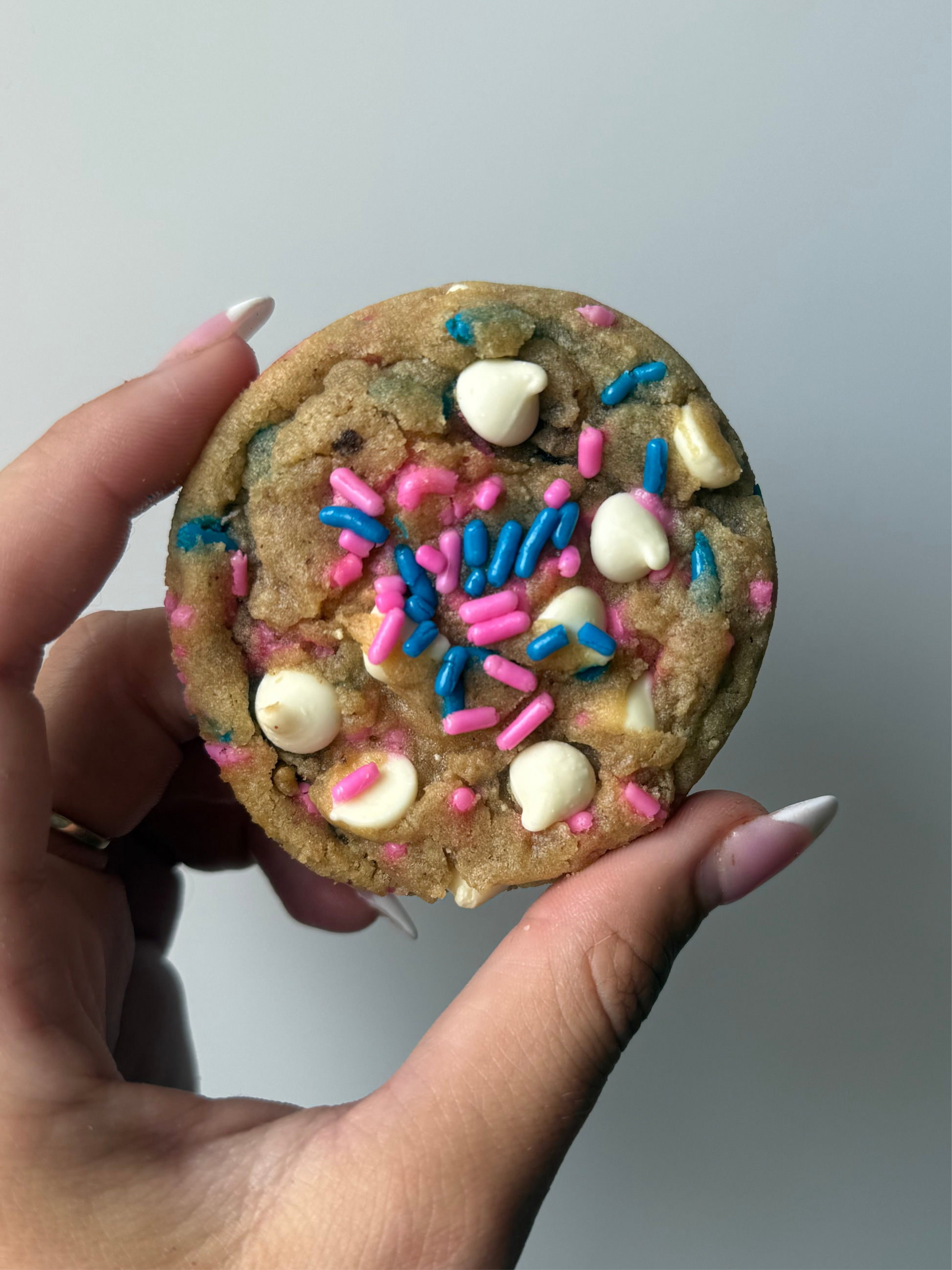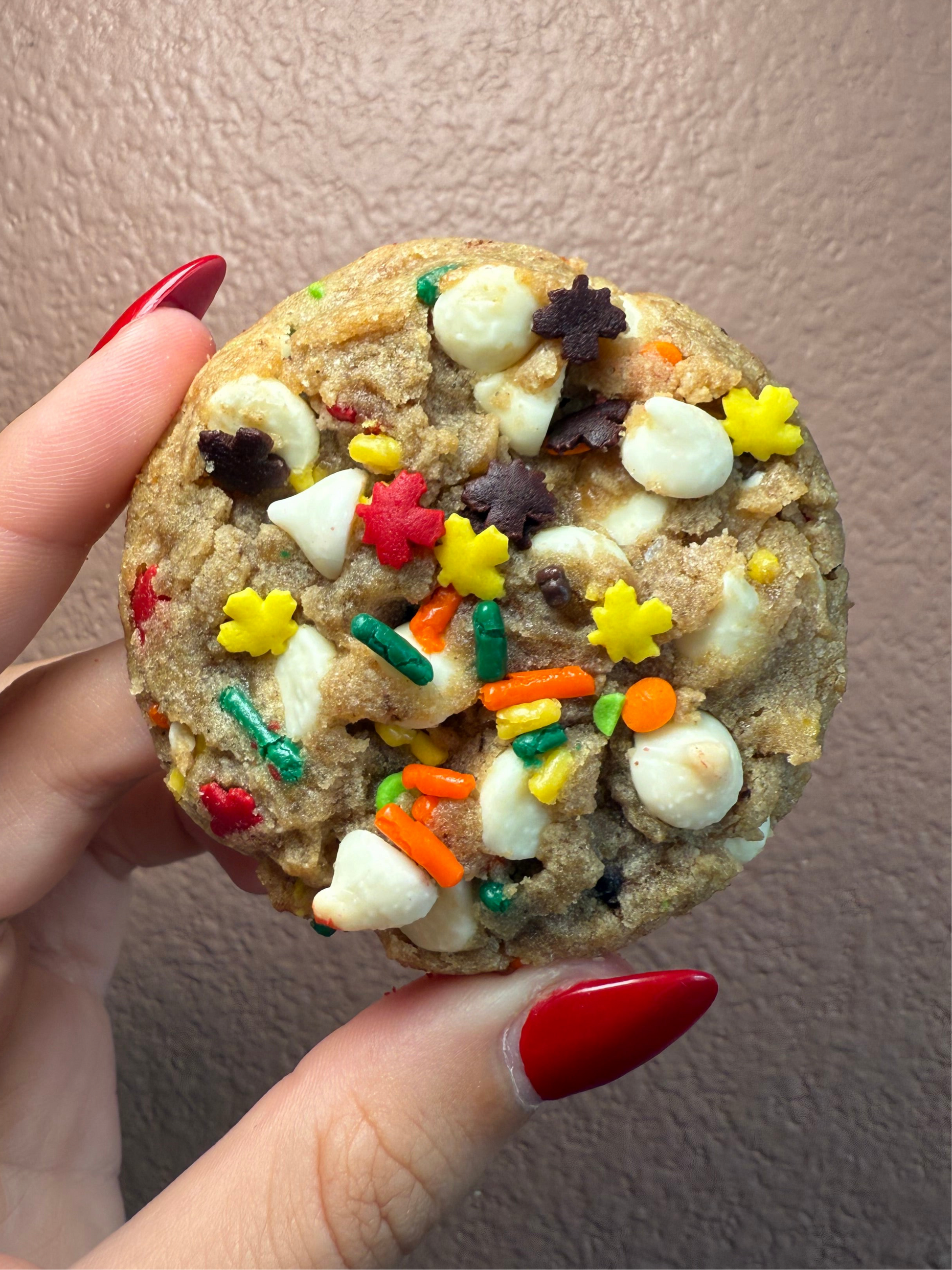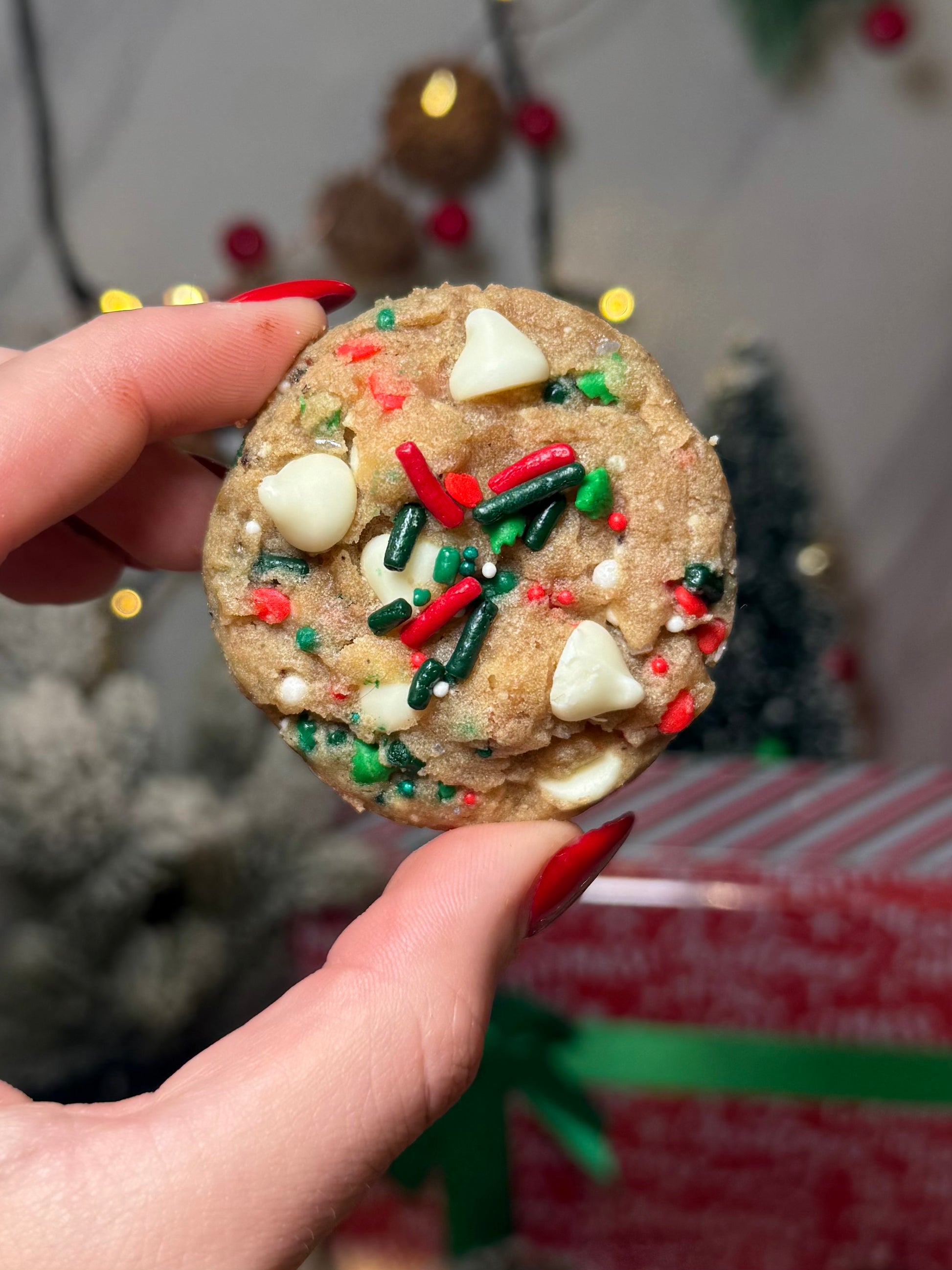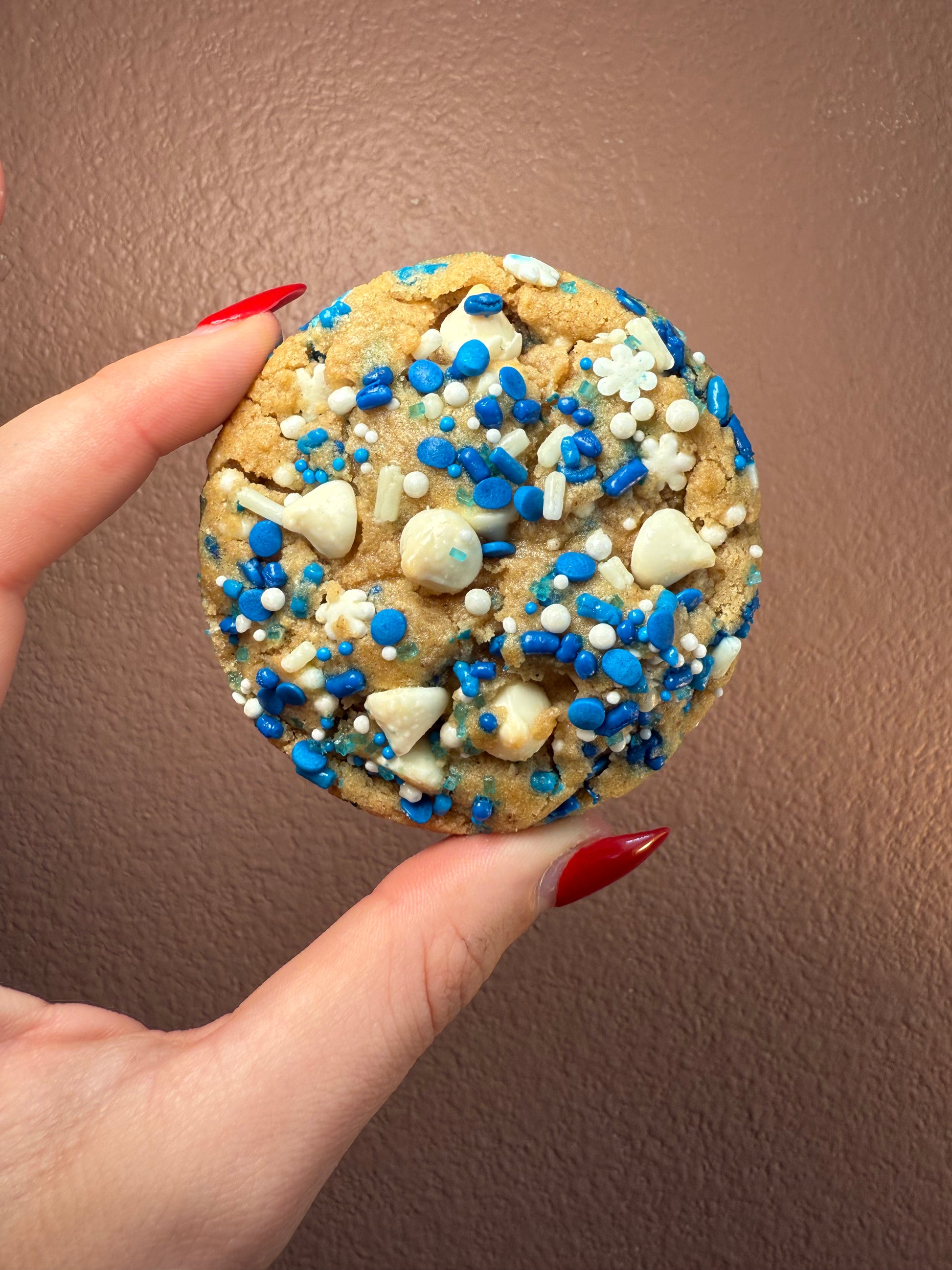 My twist on a sugar kookie, filled with white chocolate chips and your choice of sprinkles.